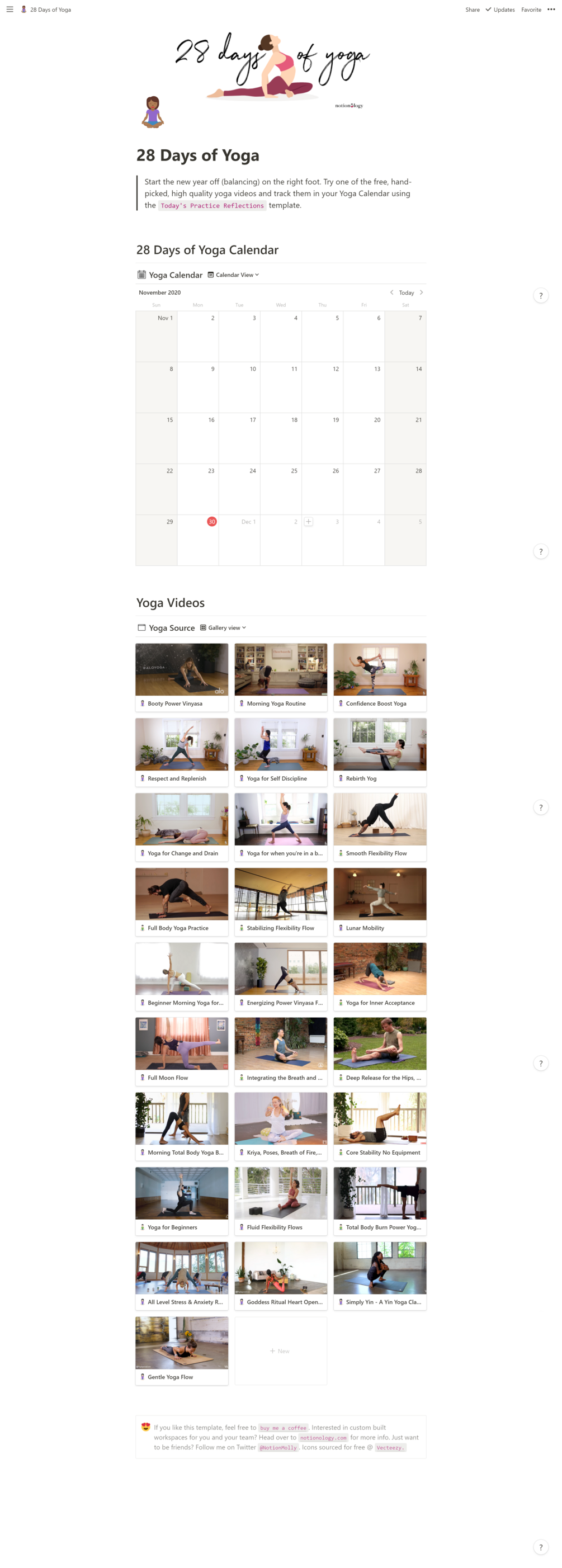 Notion Template: 28 Days of Yoga